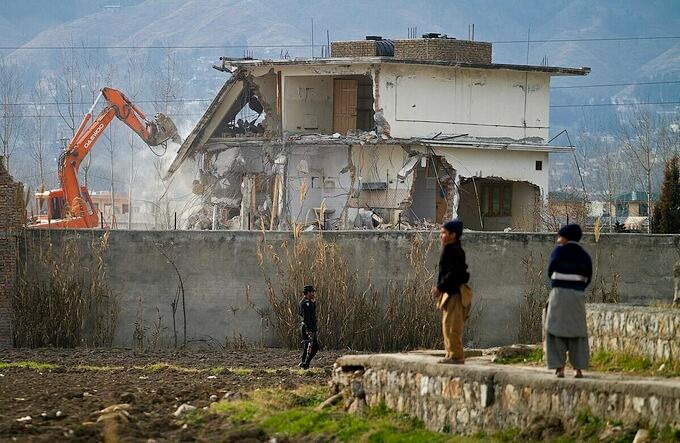 Khu nhà của Osama bin Laden ở Abbottabad, Pakistan bị nhà chức trách phá dỡ ngày 26/2/2012. Ảnh: AP