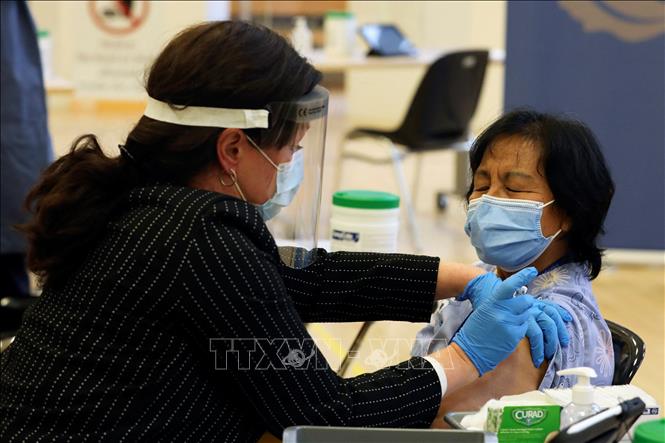 Nhân viên y tế tiêm vaccine Pfizer/BioNTech ngừa COVID-19 cho người dân tại Toronto, Canada. Ảnh: AFP/TTXVN