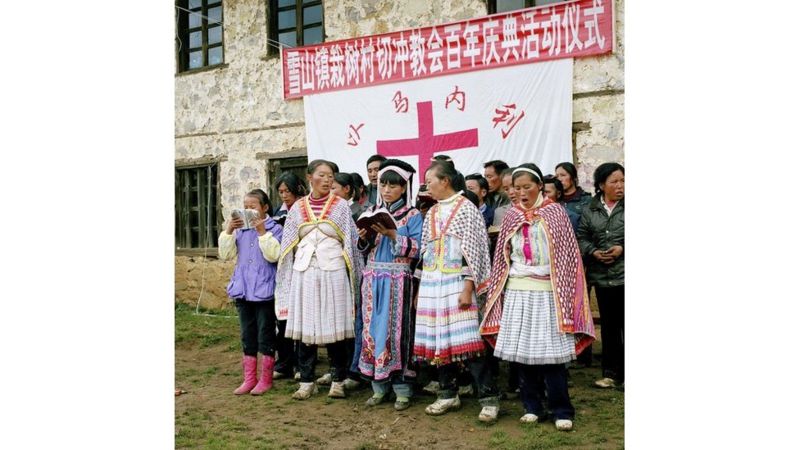 Người Hmong ở Trung Quốc c̣n gọi là Miêu tộc theo Thiên Chúa giáo trong một làn hát Thánh Ca