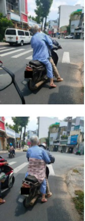 Người con trai cho biết cụ ông bị té, nhập viện đã mấy ngày. Anh sợ cha già một mình trong viện, không vào chăm được nên đành đưa ông cụ về. Gọi mãi không bắt được chiếc taxi nào, anh "cực chẳng đã" đành chở cha trên chiếc xe máy đã cũ mèm.