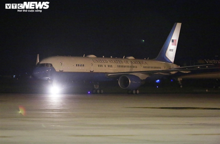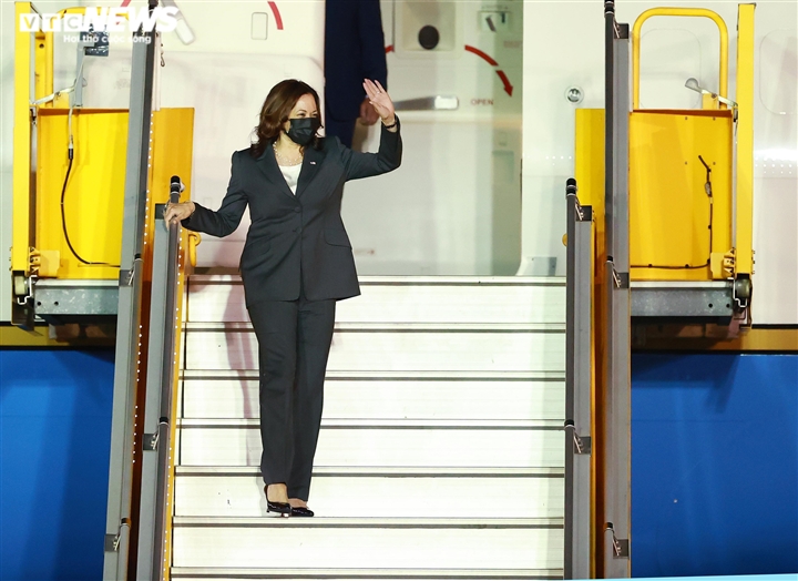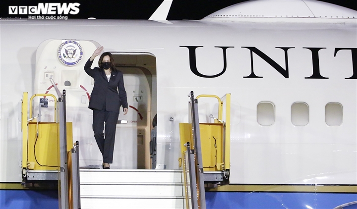 Chiếc Không lực Hai chở Phó Tổng thống Mỹ Kamala Harris hạ cánh xuống Hà Nội lúc 21h40 ngày 24/8 và bà được đưa về khách sạn J.W.Marriot.