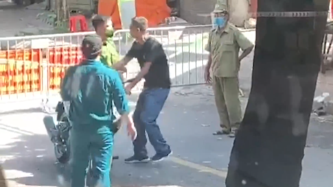 Không hiểu chuyện gì đã xảy ra mà người đàn ông đã lớn tiếng với công an tại chốt kiểm dịch.