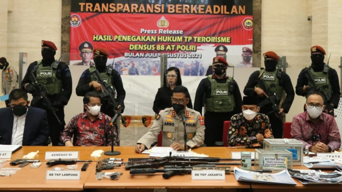 Cảnh sát chống khủng bố Indonesia tuyên bố bắt giữ 53 nghi phạm khủng bố ở 11 tỉnh của Indonesia từ 12-17/8/2021. Nguồn: Cảnh sát quốc gia Indonesia