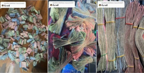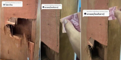 Vốn cứ tưởng nơi an toàn nhất chính là nơi nguy hiểm nhất, người đàn ông này cuối cùng cũng không thoát được đôi mắt tinh tường của vợ. Số tiền được tích lũy bên trong tường nhiều đến nỗi anh phải mất một lúc lâu mới lấy hết ra được. Mệnh giá tiền bên trong có cả tờ tiền nhỏ 20 Baht cho đến tờ 500 Baht. Và sau một hồi đếm tổng kết, người vợ đã thu về được khoảng 30.000 Baht (hơn 20 triệu đồng).