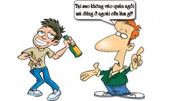 - Tôi mới bị ông chủ quán tống cổ ra đây vì cứ liếc nhìn bà chủ quán.