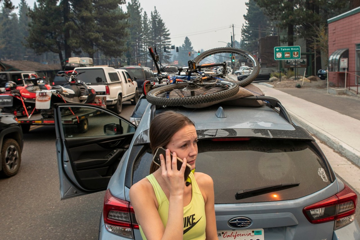 Dân California ồ ạt sơ tán do cháy rừng, ôtô chôn chân trên quốc lộ. Cháy rừng lan rộng khiến giao thông trên tuyến đường huyết mạch ở thành phố South Lake Tahoe bị tắc nghẽn nhiều giờ, khi người dân được lệnh sơ tán.