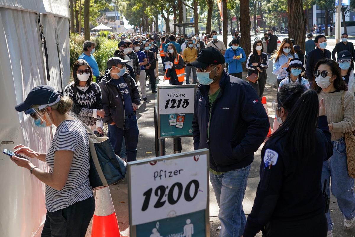 Người dân xếp hàng chờ tiêm chủng tại Sydney, Australia vào ngày 16/8. Ảnh: Reuters.