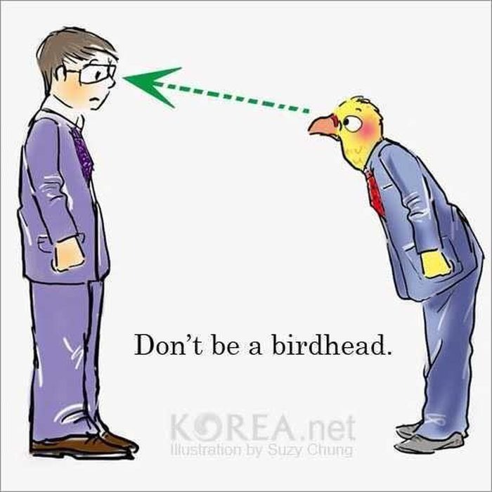 Bạn nên tránh giao tiếp bằng mắt khi cúi đầu. Vì trong văn hóa phương Đông, bất cứ khi nào bạn gặp người lớn tuổi, bạn nên tránh giao tiếp bằng mắt để thể hiện sự tôn trọng của mình với người lớn tuổi.
