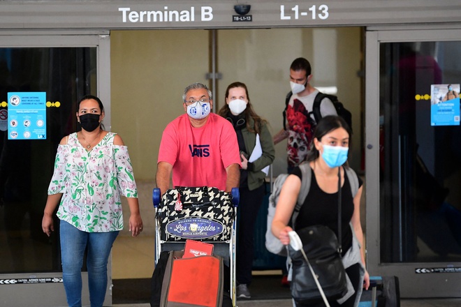 Du khách rời ga tại sân bay quốc tế Los Angeles hồi tháng 5. Ảnh: AFP.
