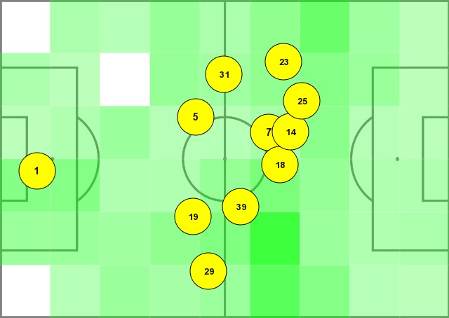 Hãy nhìn vị trí trung bình của cầu thủ Man Utd vào cuối hiệp hai. Ý đồ được giữ nguyên. Hệ thống vẫn vậy. Họ không hoảng loạn trước sự thay đổi chóng mặt của các diễn biến. Nó là một điểm đáng khen, làm nên trận bất bại sân khách thứ 29 liên tiếp ở Ngoại hạng Anh và giờ xếp thứ ba, chỉ kém Liverpool và Chelsea hiệu số bàn thắng bại.