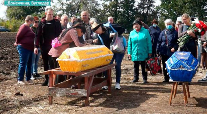 Đám tang của hai chị em ở làng Mykilske, Ukraine, hôm 19/9. Ảnh: East2west News
