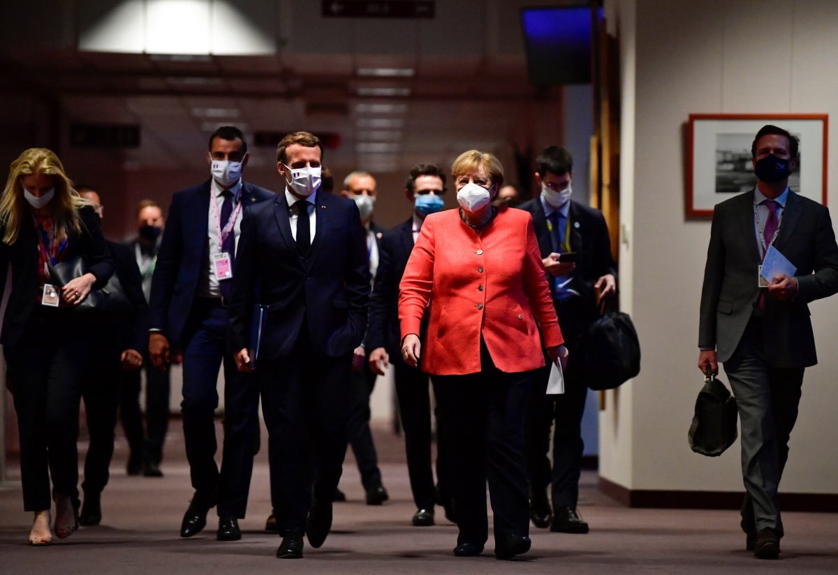 Tổng thống Pháp Emmanuel Macron và Thủ tướng Đức Angela Merkel tại Brussels năm 2020. Ảnh: New York Times