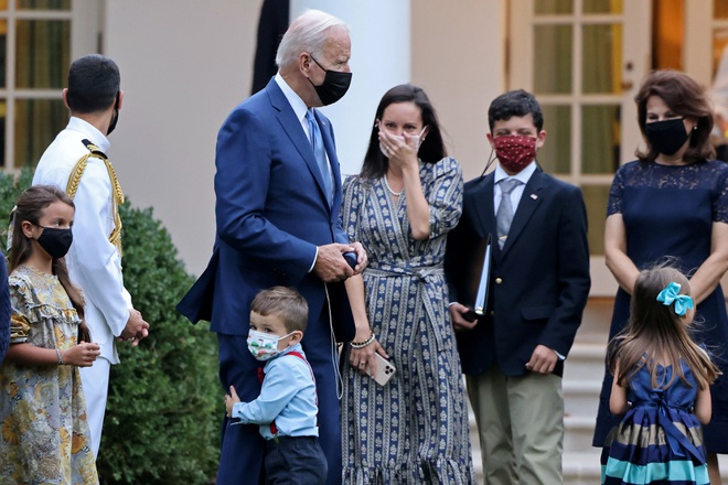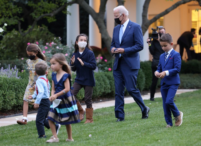Chiều 8/10 (giờ Mỹ), sau khi tham gia buổi lễ thăng chức cho phụ tá quân sự ở phòng Bầu dục, Tổng thống Biden đã xuất hiện ở bãi cỏ phía nam Nhà Trắng cùng với các phụ tá và gia đình của họ.