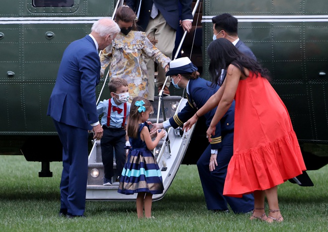 Sau khi giúp đỡ các thiếu nhi lên và xuống để tham quan trực thăng, ông Biden trở lại phương tiện này để di chuyển tới quê nhà ở bang Delaware vào dịp cuối tuần.