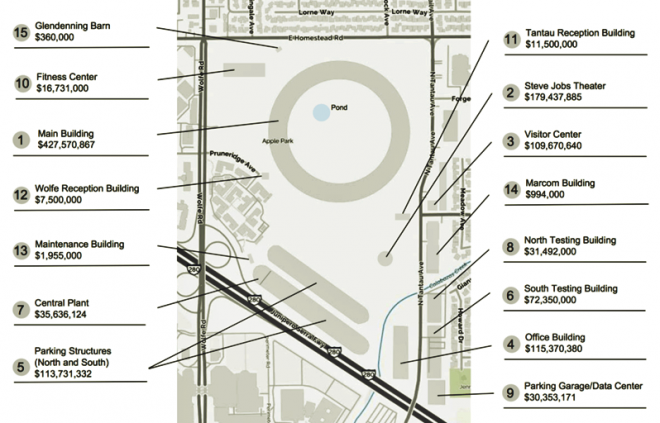 Chi phí xây dựng các ṭa nhà bên trong Apple Park