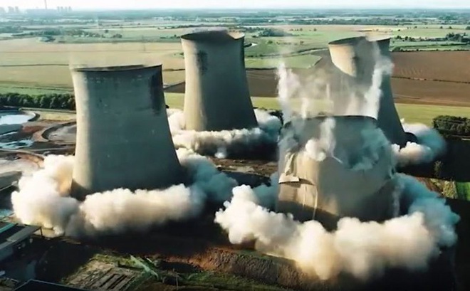 Bốn ṭa tháp làm mát của một nhà máy nhiệt điện ở Anh bị đánh sập trong nháy mắt sau khi cơ sở này ngừng hoạt động.