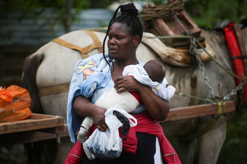 Một người di cư ôm đứa trẻ, chuẩn bị đi qua Panama và tiếp tục tiến về phía bắc, ở Acandi, Colombia vào ngày 23/9/2021. Ảnh: Reuters