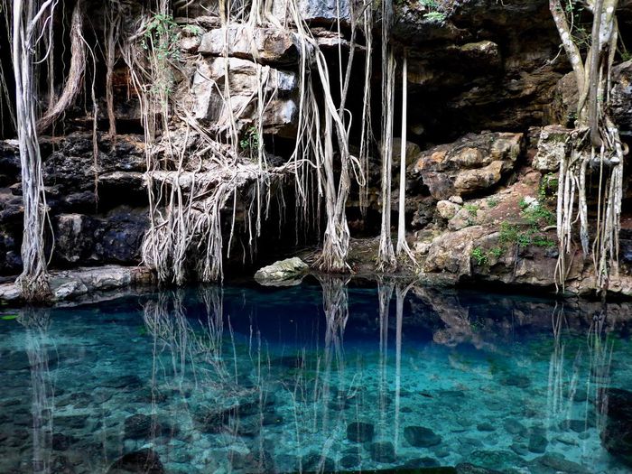 Hố Yucatan mở thông như giếng trời, khoảng cách giữa mặt đất và mặt nước bên dưới là 26 m, trông hồ nước thiêng này giống như một “bồn tắm” lộ thiên.
