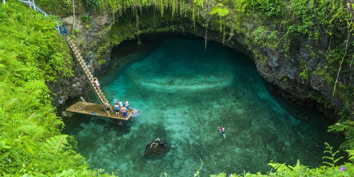 Là một bể bơi tự nhiên thuộc đảo núi lửa Upolu ở Samoa, được tạo ra từ một vụ phun trào núi lửa làm sập một phần đất, hồ To Sua Ocean Trench (hay c̣n gọi là “Cái hố lớn”) sâu gần 30 m. Đường dẫn xuống hồ là một thang gỗ bắc cheo leo, đôi khi du khách có thể đứng trên đó nhảy xuống hồ tắm hệt như một tṛ chơi cảm giác mạnh.