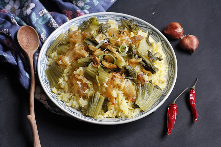 Món này sẽ có hạt cơm đậm vị quyện với tóp mỡ giòn giòn, béo ngậy cùng dưa cải chua chua rất hấp dẫn. Đây là món ăn thuở nghèo khó, gắn liền tuổi thơ nhiều người.