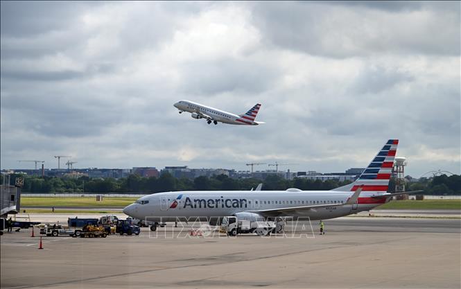 Máy bay của Hăng hàng không American Airlines tại sân bay quốc gia Ronald Reagan Washington ở Arlington, Virginia, Mỹ, ngày 10/7/2020. Ảnh: AFP/TTXVN