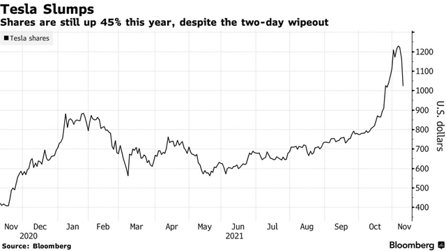 Cổ phiếu Tesla giảm 12% ở phiên 9/11, trong khi giảm 4,8% trong phiên trước đó. Dẫu vậy, Tesla vẫn tăng 45% trong năm nay và tiếp tục duy trì mức vốn hoá 1 nghìn tỷ USD. Quý trước, Tesla ghi nhận kết quả kinh doanh đầy tích cực và hãng cho thuê xe Hertz cho biết đã đặt một đơn hàng lớn xe Tesla.