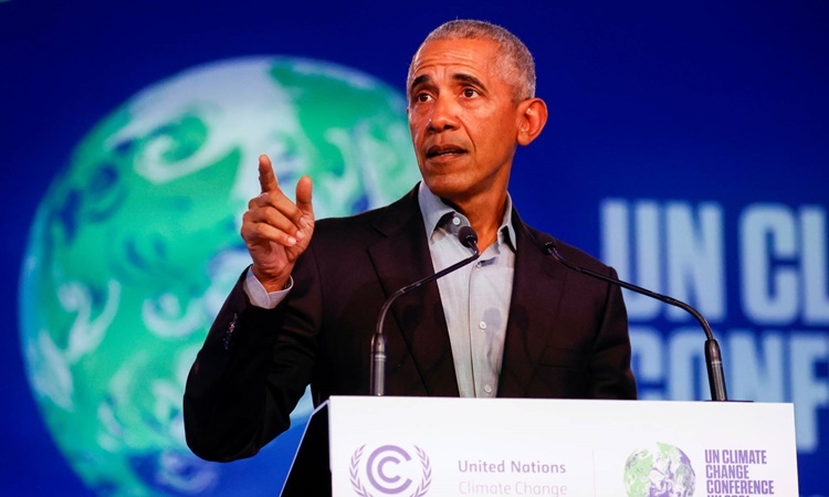 Cựu tổng thống Mỹ Barack Obama phát biểu tại hội nghị về biến đổi khí hậu của Liên Hợp Quốc COP26 tại Glasgow, Scotland, ngày 8/11. Ảnh: Reuters.