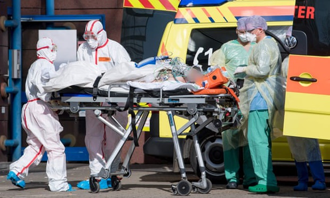 Bệnh nhân Covid-19 được chuyển đến một bệnh viện ở Leipzig, Đức (Ảnh: AFP).