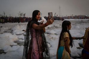 Tại một trong những con sông linh thiêng nhất của Ấn Độ là Yamuna, bọt trắng độc hại bao phủ một đoạn sông. Tuy nhiên, hôm 10/11, hàng trăm tín đồ đạo Hindu đã ngâm mình tại đây trong dịp lễ Chhath Puja.