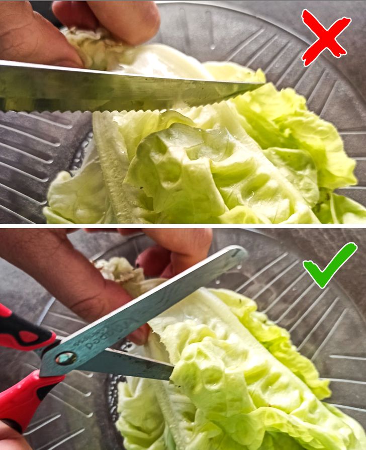 Việc cắt rau diếp bằng dao ở Pháp được xem là vấn đề nghiêm trọng, có một số lý do trong quá khứ liên quan tới điều này. Người ta sẽ sử dụng kéo để thay thế dao.