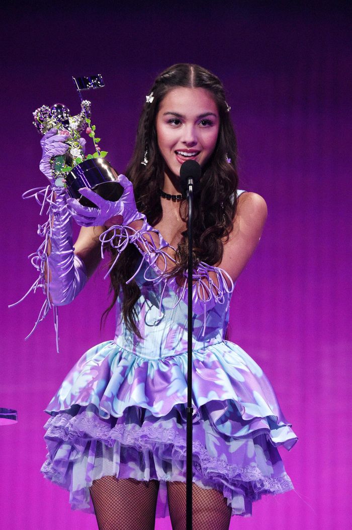 Không chỉ Cardi B, Olivia Rodrigo cũng là tâm điểm chú ý tại sự kiện AMA 2021. Chiếc váy xanh sequin của David Koma đã giúp ngôi sao 18 tuổi khoe vóc dáng, nổi bật ở thảm đỏ. Lúc biểu diễn, cô cũng ưu tiên thiết kế khoét ngực, xẻ tà, thể hiện nét quyến rũ. Trong những sự kiện gần đây, việc cô liên tục xuất hiện với tạo hình gợi cảm khiến fan bất ngờ. Theo Lifeandstylemag, sự chuyển mình trong phong cách của nữ ca sĩ bắt đầu từ lúc cô đủ 18 tuổi vào tháng 2. Tủ quần áo của cô dần phản ánh vị thế của một phụ nữ trẻ trưởng thành. Sau khi đóng vai chính trong Bizaardvark (2016-2019) và High School Musical: The Series (2019-2021), Olivia nhanh chóng tiếp cận khán giả trưởng thành với tư cách là ngôi sao nhạc pop. Với bản hit Drivers License, cô khiến khán giả thán phục ở Saturday Night Live và đang trở thành một ngôi sao thời trang nghiêm túc. "Olivia không nhất thiết phải mặc đến hàng hiệu. Thay vì hỏi món đồ được làm bởi nhà mốt nào, cô ấy hay thắc mắc nó có phải đồ cổ không? Olivia thích thời trang của những năm 1990 và 2000 khi xuất hiện trước công chúng", Chenelle Delgadillo - nhà tạo mẫu của Olivia và chị gái Chloe - nói với The New York Times. Từ khi xuất hiện tại Nhà Trắng trong bộ đồ Chanel hồng năm 1995, phong cách đường phố cổ điển của cô cũng được chú ý. Ảnh: Teen Vogue, Lifeandstylemag, G.