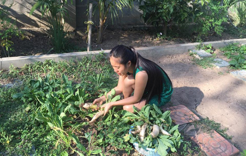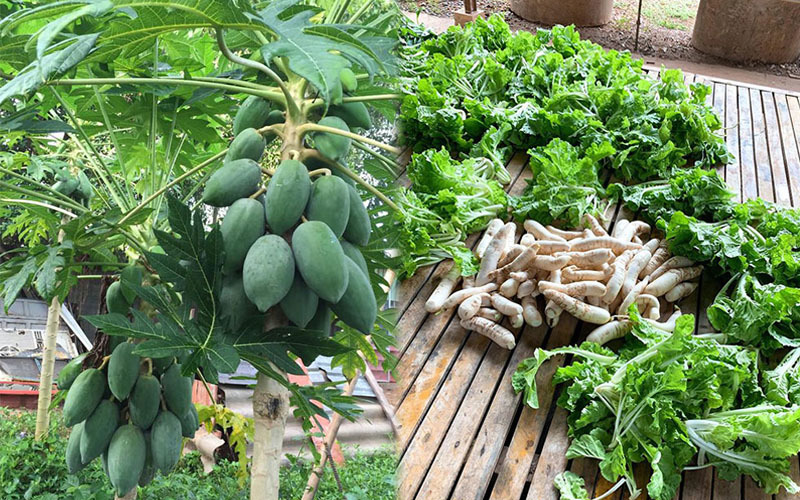 Khu vườn là nguồn thức ăn sạch hàng ngày mà gia đình của nữ diễn viên tự nuôi trồng. (Ảnh: FB Lê Phương)