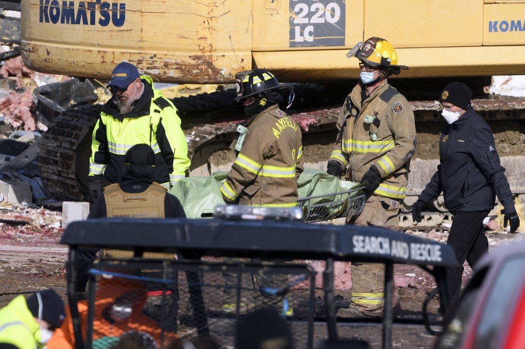 Nhân viên phản ứng khẩn cấp cứu hộ nạn nhân tại nhà máy sản xuất nến Mayfield.