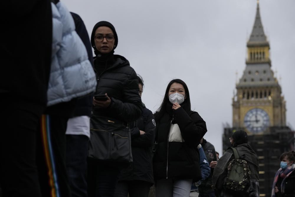 Hàng người chờ tiêm chủng tại một bệnh viện tại thủ đô London, Vương quốc Anh hôm 13/12. Chính phủ Anh đang kêu gọi người dân đi tiêm mũi vaccine thứ ba để đối phó với biến chủng Omicron. Ảnh: AP.