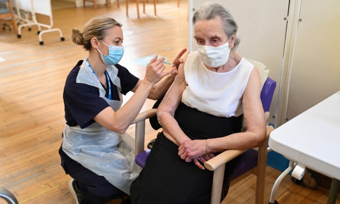 Nhân viên y tế Anh tiêm vaccine cho một phụ nữ cao tuổi tại bệnh viện ở Belper ngày 16/12. Ảnh: AFP.