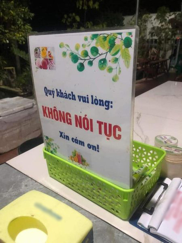 Dân mạng chia sẻ rộng rãi hình ảnh một tấm biển trên bàn quán nhậu có nội dung khiến nhiều người thắc mắc. Theo đó, một vị khách đến quán bất ngờ khi thấy chủ quán để tấm biển nhắc nhở khách: "Không nói tục". Tấm biển này ngay lập tức khiến dân mạng nổ ra những luồng tranh cãi.