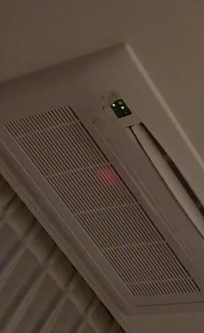 Thế nhưng trong một lần lưu trú khách sạn sau khi làm việc hồi đầu tháng này, Alisa đã gặp phải một tình huống khiến cô vô cùng lo lắng. Nữ tiếp viên kể rằng đêm đó khi đang nằm ngủ, trong lúc lơ mơ tỉnh lại, cô bỗng thấy một đốm đỏ trên trần nhà. Bị giật mình, Alisa bật đèn phòng lên thì biết đó là ánh sáng phát ra từ điều hòa. Ban đầu cô gái chỉ cho rằng điều hòa báo lỗi nhưng điều kỳ lạ là đốm đỏ nhấp nháy phát ra ở giữa khu vực khe gió chứ không phải ở bảng điều khiển.