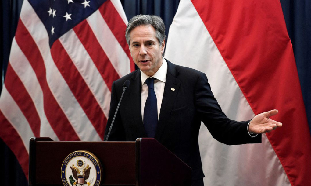 Ngoại trưởng Mỹ Antony Blinken phát biểu tại đại sứ quán Mỹ ở Jakarta, Indonesia, hôm 14/12. Ảnh: Reuters.