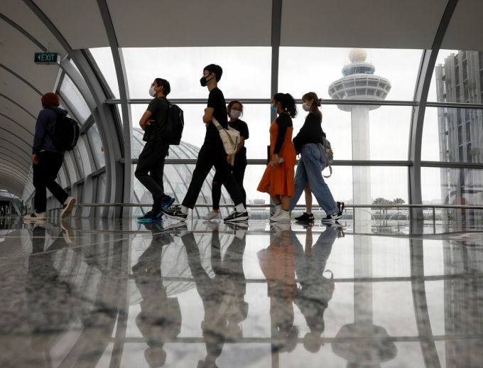Hành khách tại sân bay Changi, Singapore ngày 18/1/2021. Tính đến nay, có khoảng 65 du khách dương tính với Omicron khi đến Singapore. Ảnh: Edgar Su/Reuters