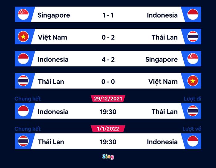 Tuyển Thái Lan hướng đến danh hiệu AFF Cup lần thứ 6 trong lịch sử. Họ sẽ gặp Indonesia ở chung kết, diễn ra ngày 29/12 và 1/1/2022.