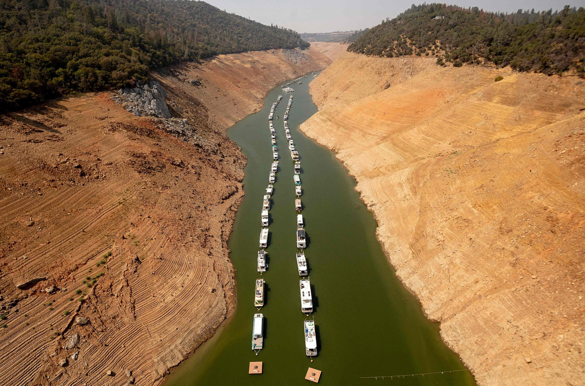 Mực nước hồ Mead, nằm giữa Nevada - Arizona và là hồ chứa lớn nhất nước, đă xuống mức thấp kỷ lục. Toàn bộ California vẫn trong t́nh trạng khẩn cấp về hạn hán, khiến Thống đốc Gavin Newsom kêu gọi cư dân giảm sử dụng nước xuống 15%.
