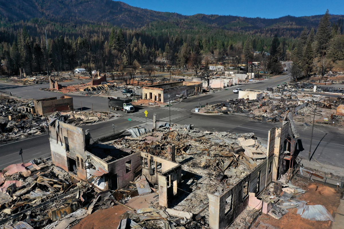Phần c̣n lại của những ngôi nhà và cơ sở kinh doanh bị đám cháy Dixie ở Greenville, California phá hủy hồi tháng 8.