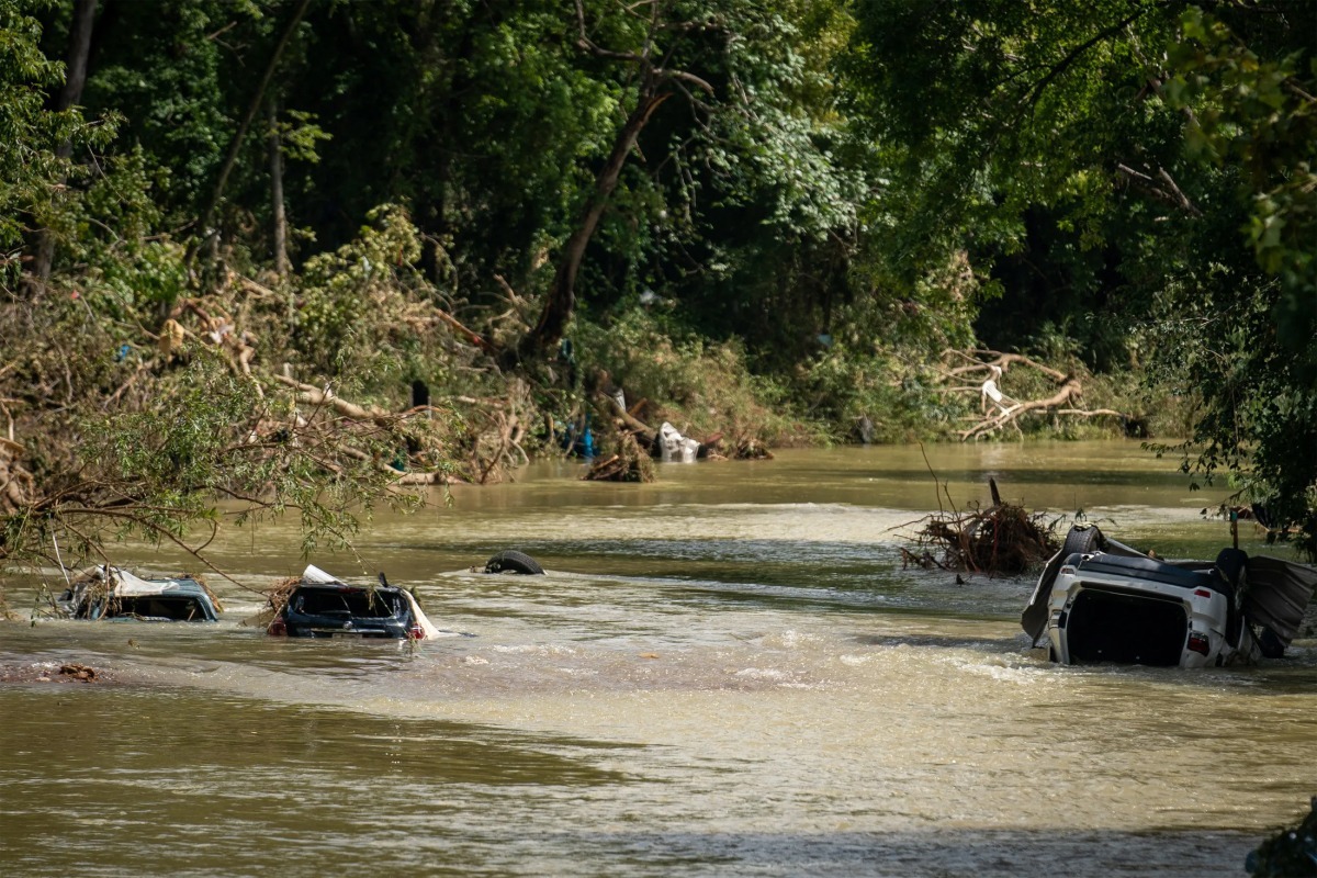 Ôtô ngập nước ở Trace Creek, thành phố Wavely, bang Tennessee trong trận lũ hồi tháng 8.