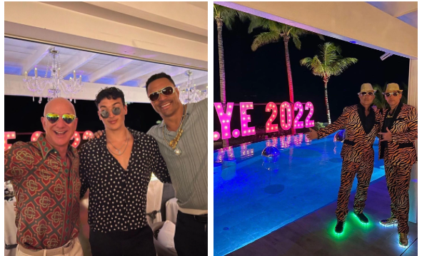 Người đàn ông giàu thứ hai thế giới đăng một loạt tấm ảnh cho thấy ông cùng người tình và bạn bè, người thân tham gia tiệc tối mừng năm mới vui vẻ bên nhau. Tất cả đều ăn mặc sành điệu và bung xõa hết mình.