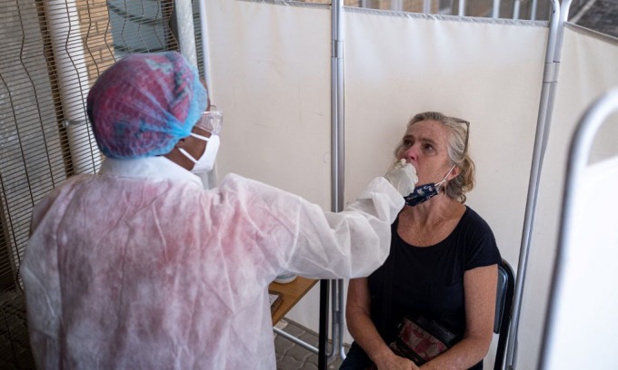 Nhân viên y tế lấy mẫu xét nghiệm nCoV tại Johannesburg, Nam Phi, hồi tháng 11/2021. Ảnh:AFP.