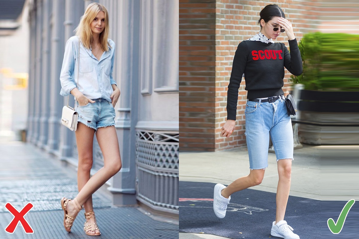 Kiểu quần shorts ngắn đến ngang đùi giúp chị em khoe chân tốt nhưng cũng khiến bộ đồ có phần kém sang. Xu hướng năm nay là những thiết kế dáng lửng, ống quần có độ rộng vừa phải, nhờ vậy người mặc che được phần đùi và trông thêm cá tính.