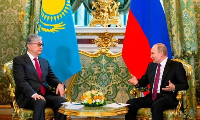 Tổng thống Nga Vladimir Putin (phải) gặp mặt người đồng cấp Kazakhstan Kassym-Jomart Tokayev hồi năm 2019 ở Moskva. Ảnh: NY Times.