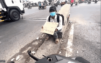 Thanh niên ăn xin bỏ chạy, vứt cả tấm biển hành nghề dù mạnh thường quân một mực xin giúp