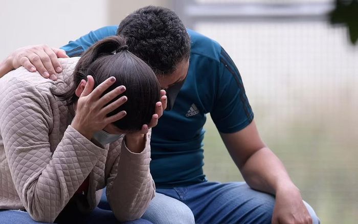 Các thân nhân của một nạn nhân trong vụ vách đá rơi nói trên. Ảnh: Getty.
