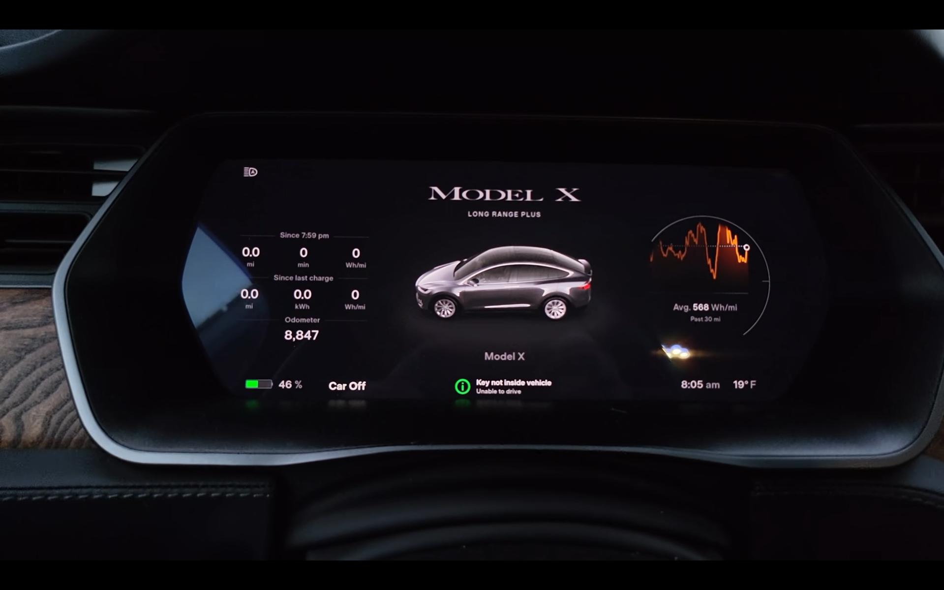 Sau một đêm thử nghiệm, chiếc Model Y giảm từ 91% pin xuống còn 58%, tức là xe hoàn toàn có thể nằm im sưởi ấm 24 tiếng với pin đầy. Còn với chiếc Model X, pin giảm từ 90% xuống 47%. Có cách % lớn giữa hai xe là bởi pin của Model X có dung lượng lớn hơn, do đó sử dụng nhiều % pin hơn khi cũng thực hiện tác vụ giống Model X.